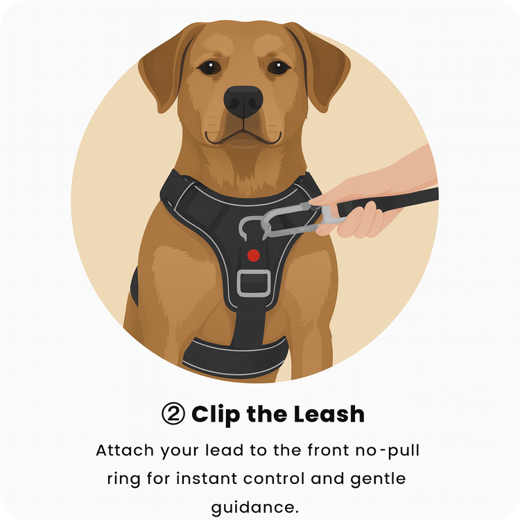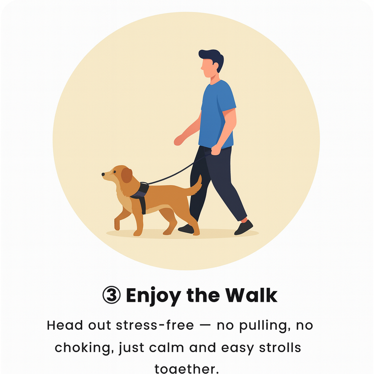 The front-clip design gently redirects your dog’s movement whenever they start to pull, encouraging them to walk beside you instead of ahead. It’s a safe, proven training method that works without pain or force — most dogs adjust within the first walk!