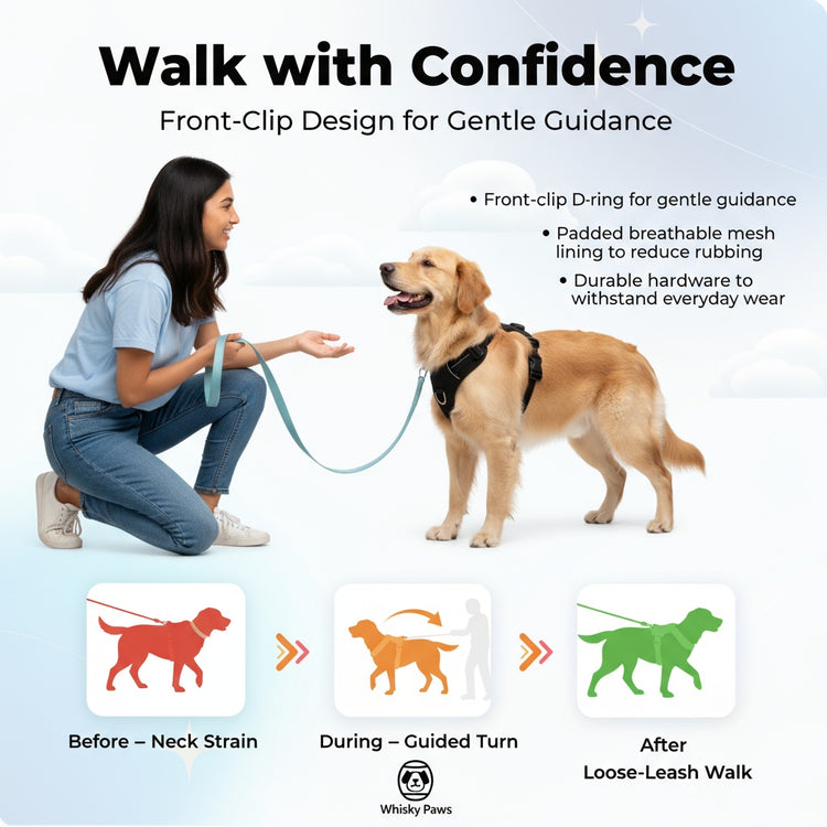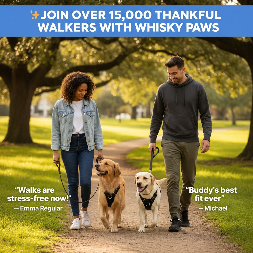 Don’t let pulling or discomfort slow you down. Choose Whiskey Paws and make every walk an adventure you both look forward to.