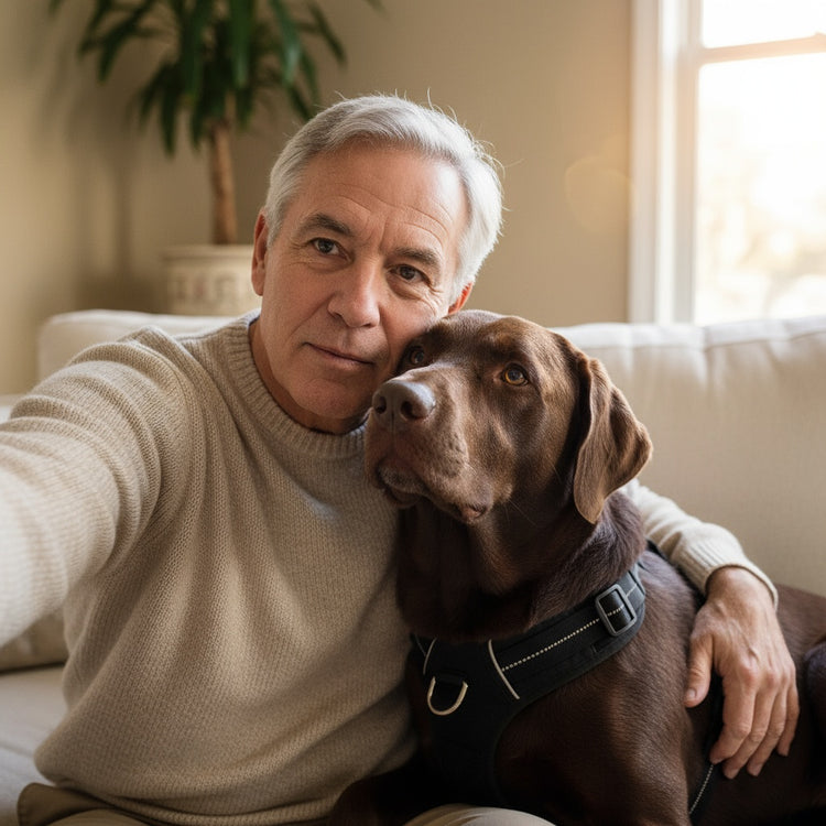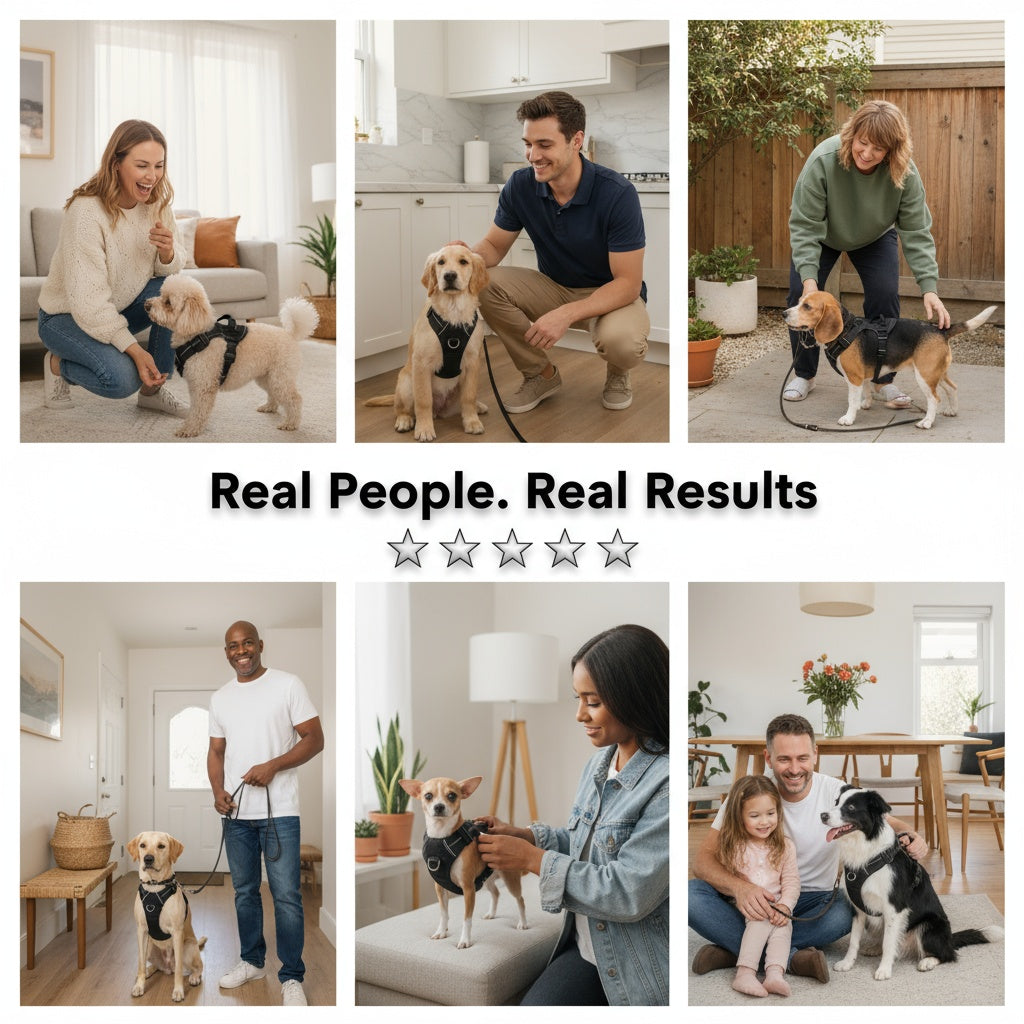 See the difference as dogs enjoy smoother, more relaxed walks with Whiskey Paws. These photos capture happy pups confidently striding alongside their owners.